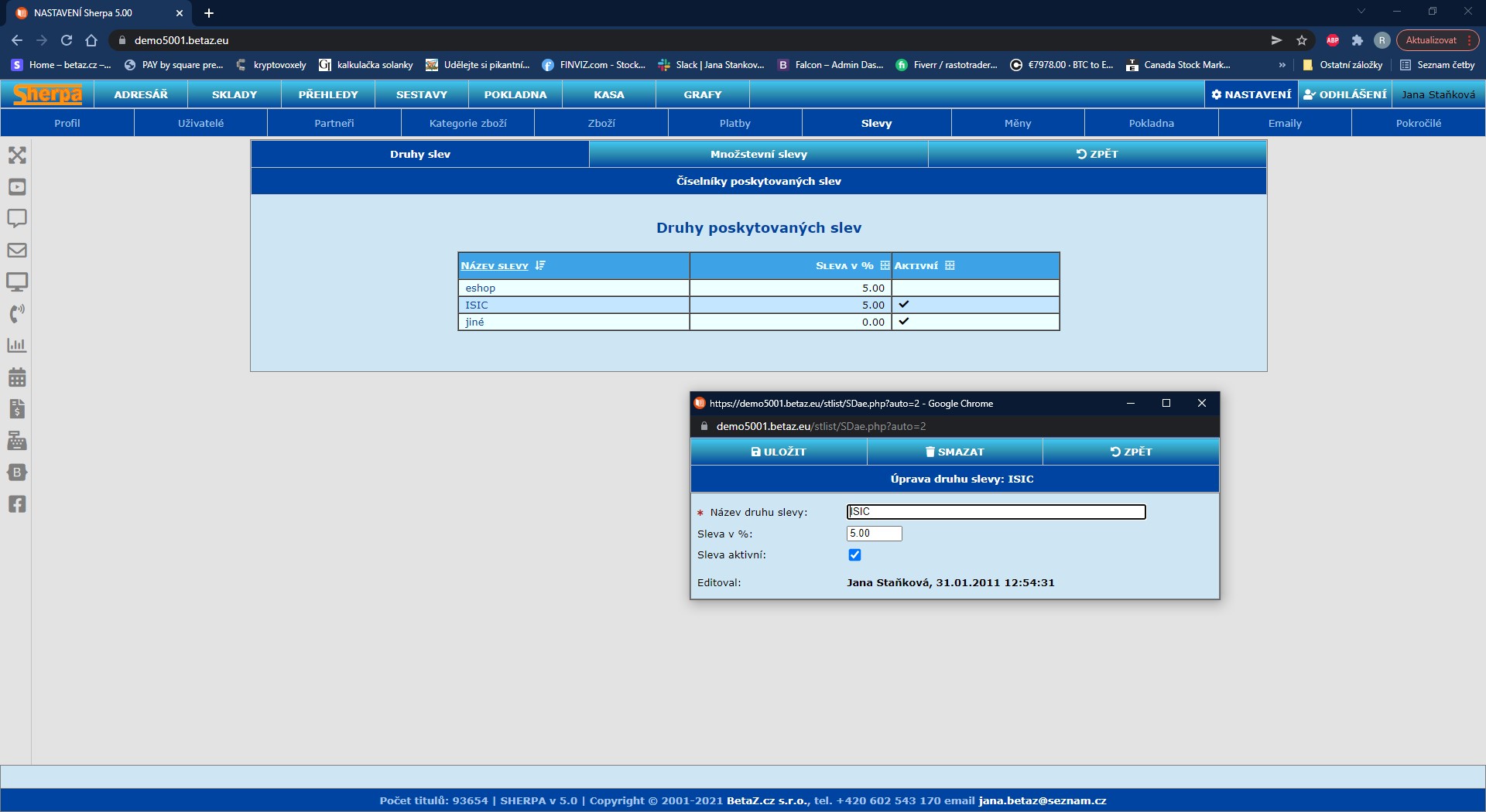 Číselníky poskytovaných slev, umožňují specifikovat upřesňující údaje jako je Druhy slev a Množstevní slevy. Číselníky si uživatel zpravidla zavádí hned na začátku používaní systému. Systém jako takový obsahuje obecné číselníky, které je potřeba upravit si k obrazu svému.