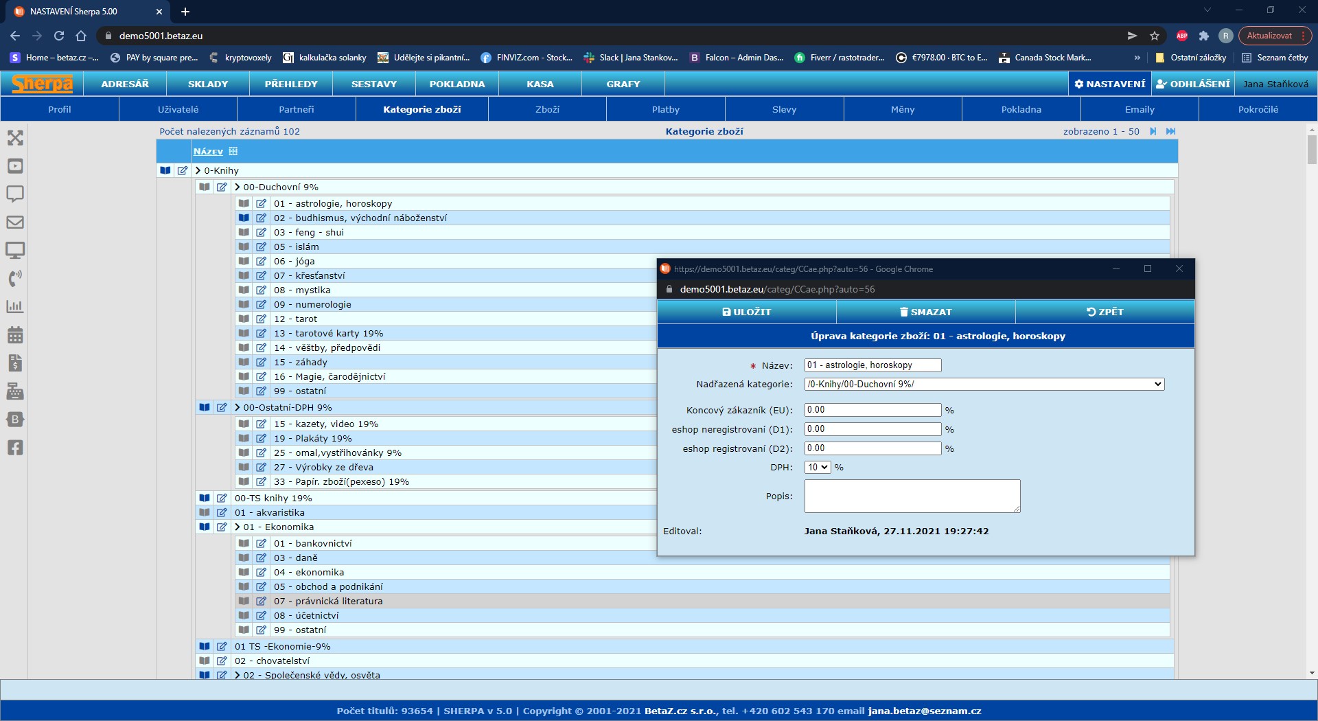 Věnujte prosím tomuto nastavení obzvlášť velkou pozornost, protože kategorizace se v budoucnu přebírá jak do e-shopu tak do B2B. Vyhnete se tím dodatečnému předělávaní celé této položky. Zároveň Vám výrazně usnadní orientaci a vyhledávání v SHERPOVI. Myslete do budoucna a systém se Vám odvděčí. !!!